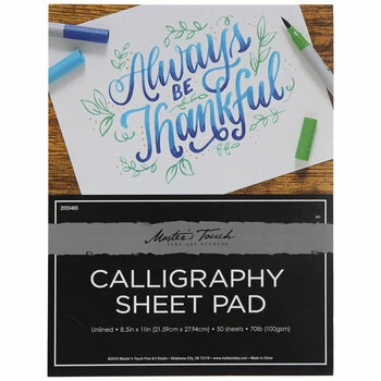 Practice your handwriting with foundations like Calligraphy Sheet Paper Pad. This unlined paper offers a white, lightweight base. Use ink, graphite, and other writing mediums to practice various calligraphy techniques!