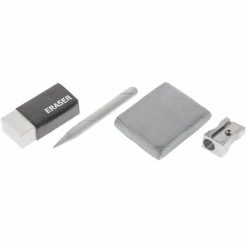 Become a drawing aficionado in no time with Drawing Accessories! This fun drawing set features a variety of tools to help you create stunning, multi-toned grayscale drawings with ease. Sharpen charcoal and graphite pencils, erase smudges, and blend!