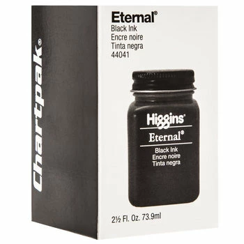 Let your creativity flow onto paper with Eternal Black Ink! This non-toxic, archival carbon writing ink can be used for all office reproduction work and is best suited for use with calligraphy, fountain pens, and airbrushing applications. It boasts a black matte sheen, has a fast drying time, and is made of a mixture of dye and pigment base color to provide a professional look. Use it to make bold, beautiful strokes!