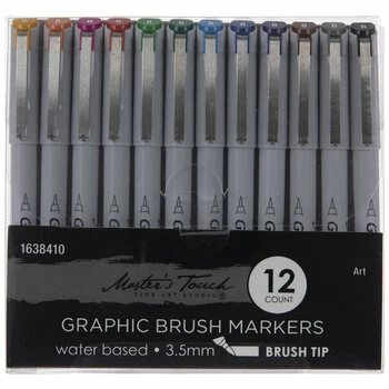 Create colorful art and fill your favorite coloring books with Graphic Brush Markers. These bold, water-based ink markers feature a stiff brush tip that allows for smooth writing and precise drawing. Let them be your tool for creating vibrant designs on all your paper crafts!