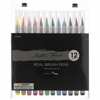 Find all the beauty of painting with these Master’s Touch Real Brush Pens! These smooth, versatile pens feature pointed nylon brush tips that can make bold or fine strokes. They include twelve different colors and are ideal for illustration, calligraphy, coloring, and other traditional art!