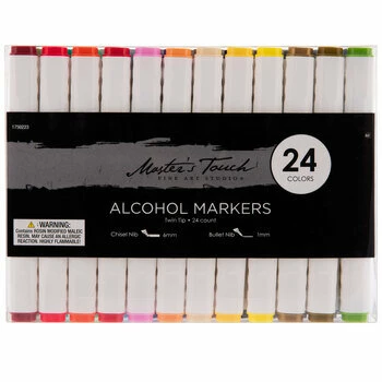 From lettering to precision drawing to all-over color, these dual-tip alcohol markers have your artistic endeavors covered. Each one features a fine tip on one end and a chisel tip on the other. For even greater versatility, try using Master’s Touch Twin Tipped Alcohol Markers with alcohol marker blenders (sold separately).