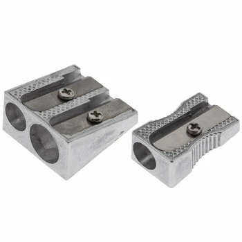 Sharpen your drawing skills while surrounding yourself with helpful tools!Β Pencil Sharpeners feature two metal pencil sharpeners, one with a standard size opening and the other with a standard and jumbo openings. Use them to get sharp tips on colored pencils, graphite pencils, and charcoal pencils for detailed masterpieces.